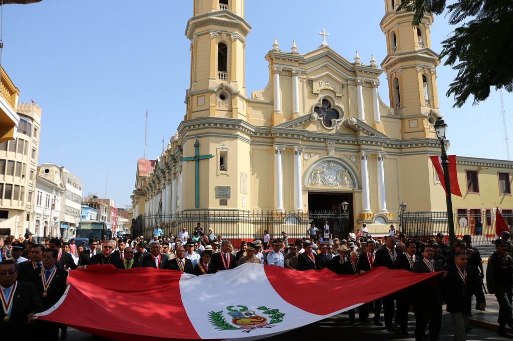 A la celebración eucarística asistieron las principales autoridades políticas, civiles y militares de nuestra Región, así como los miembros de las Asociaciones Cívico Patrióticas de nuestra ciudad. Durante su homilía nuestro Pastor se refirió a la pretensión de imponer la ideología de género en la nueva Currícula de Educación Básica y pidió que se realicen las revisiones y correcciones necesarias a la misma.